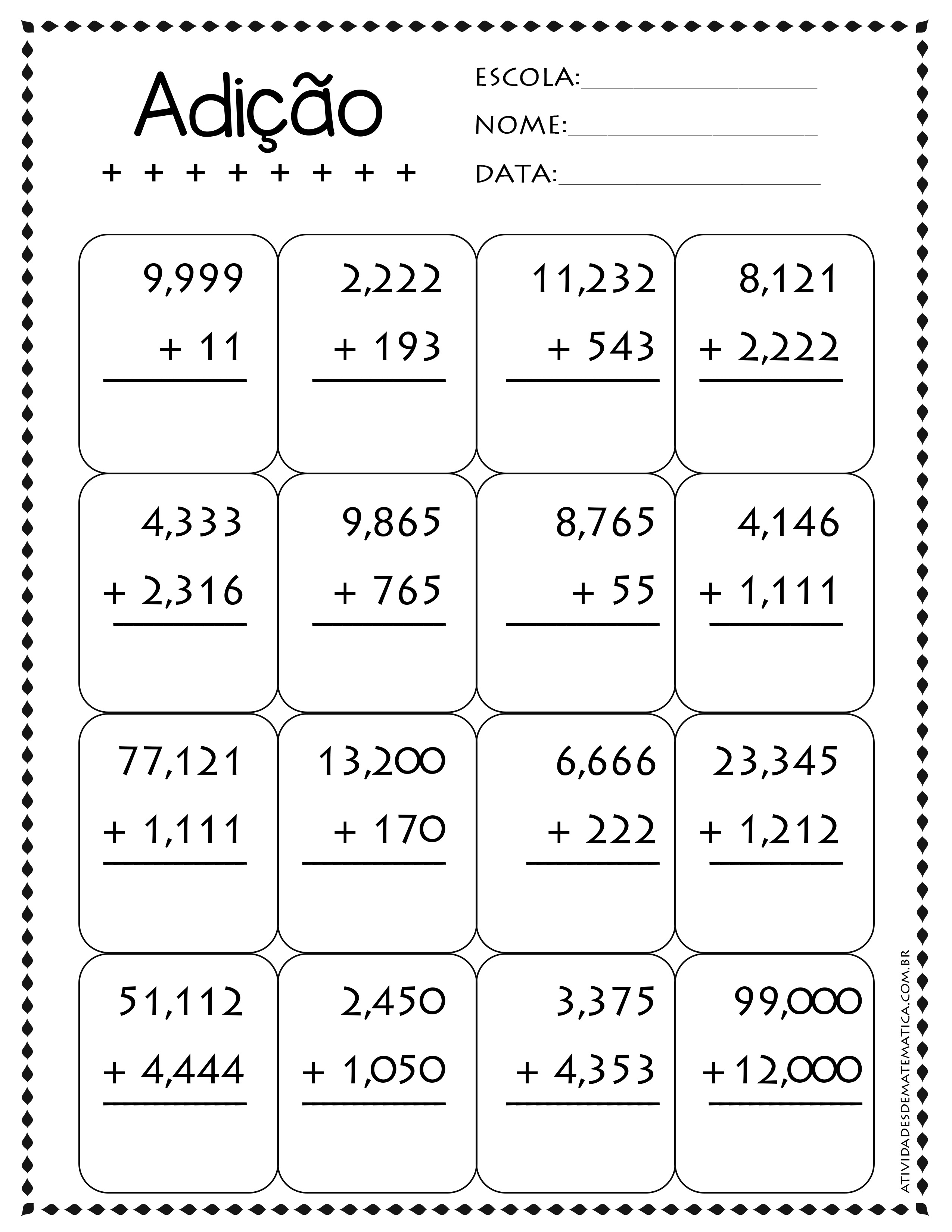 Além dessas atividades, disponibilizamos em nosso site atividades de matemática para todas as séries, desde as séries iniciais até as mais avançadas.