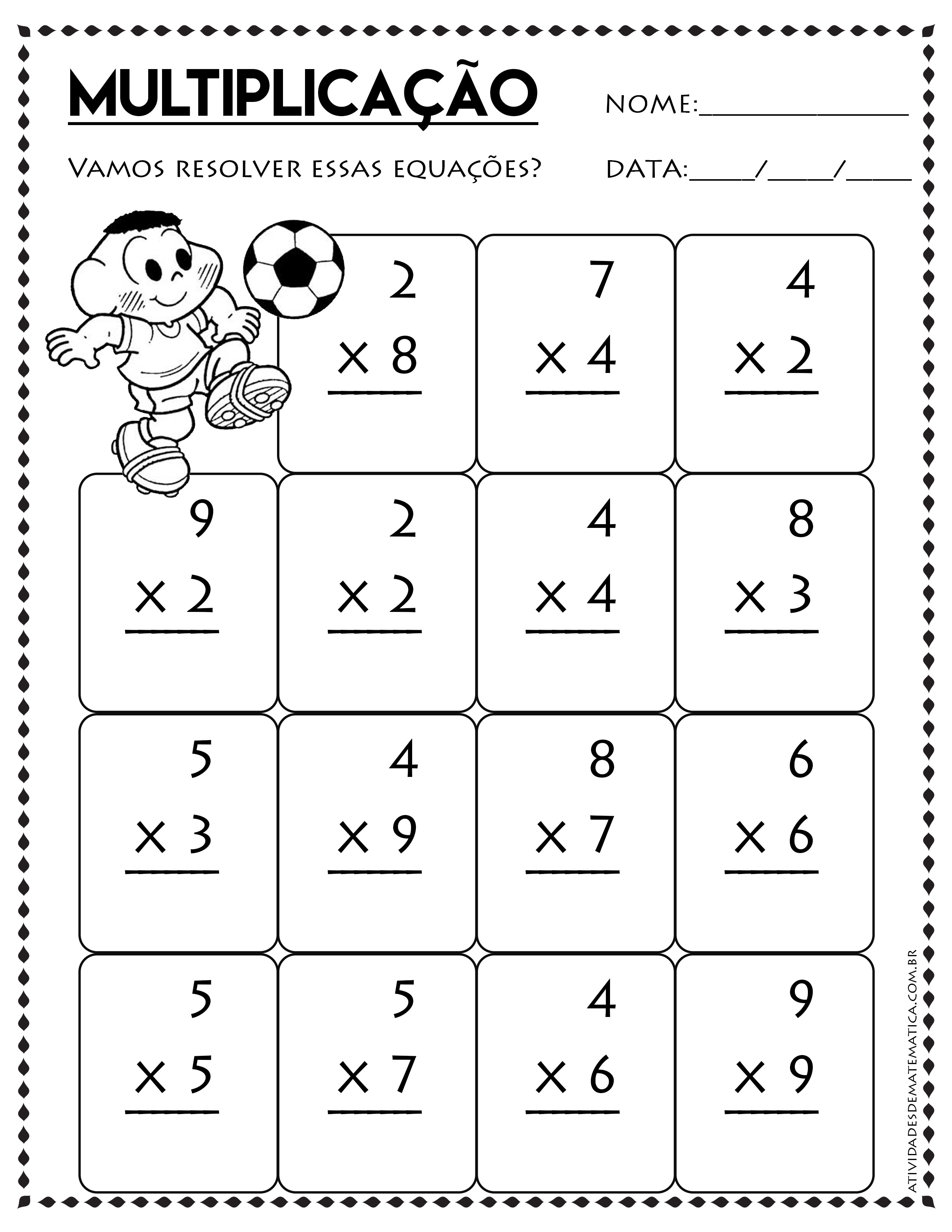 Selecionamos algumas atividades de matemática de Adição, Subtração, Multiplicação e Divisão para o ensino fundamental. Todas as atividades são gratuitas, basta você selecionar as atividades e imprimir.