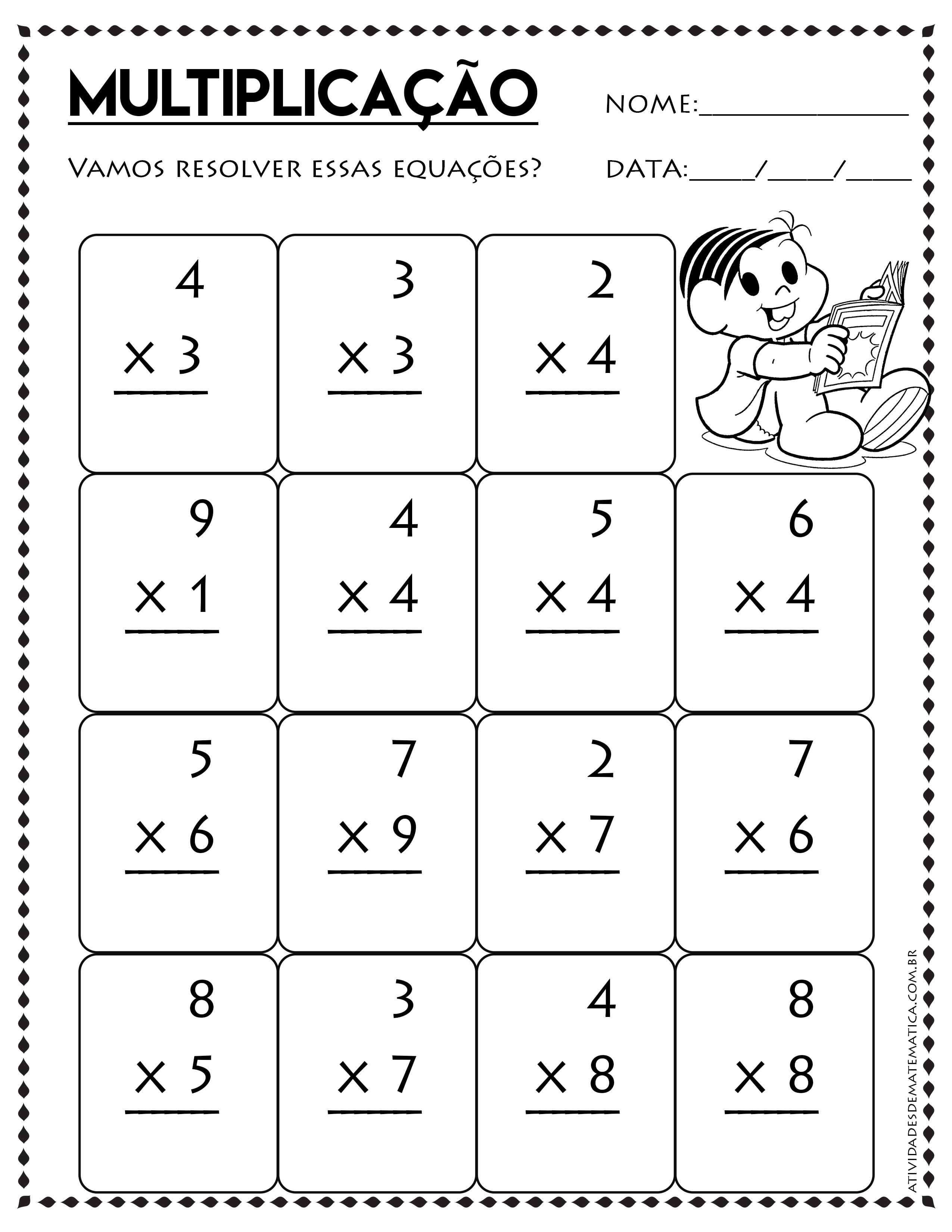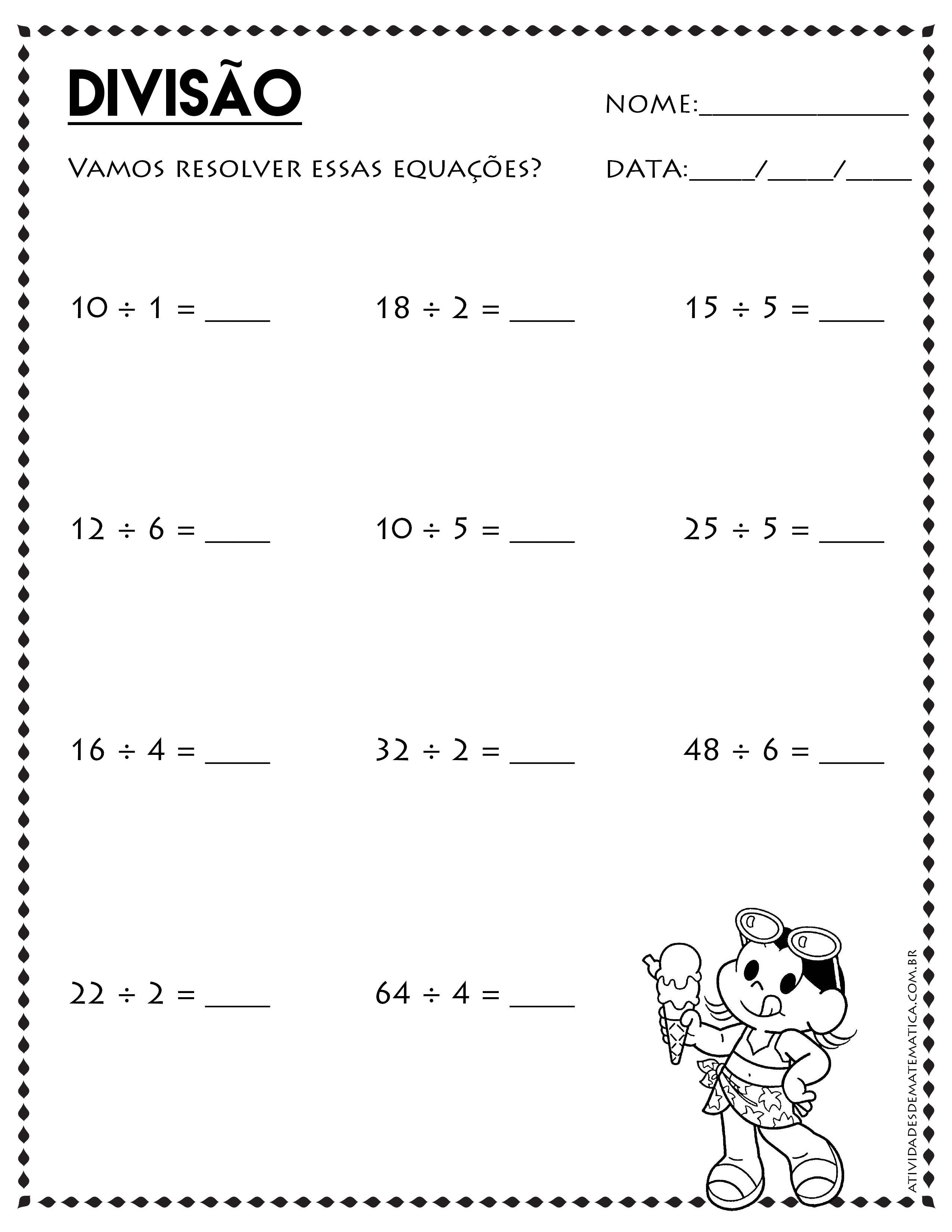 Atividades de Matemática com a da Turma da Mônica em Adição, Subtração, Multiplicação e Divisão para o ensino Fundamental. Confira dezenas de atividades de matemática grátis para imprimir.